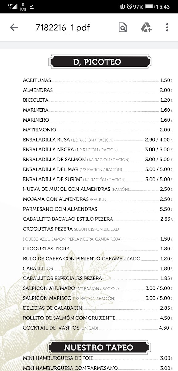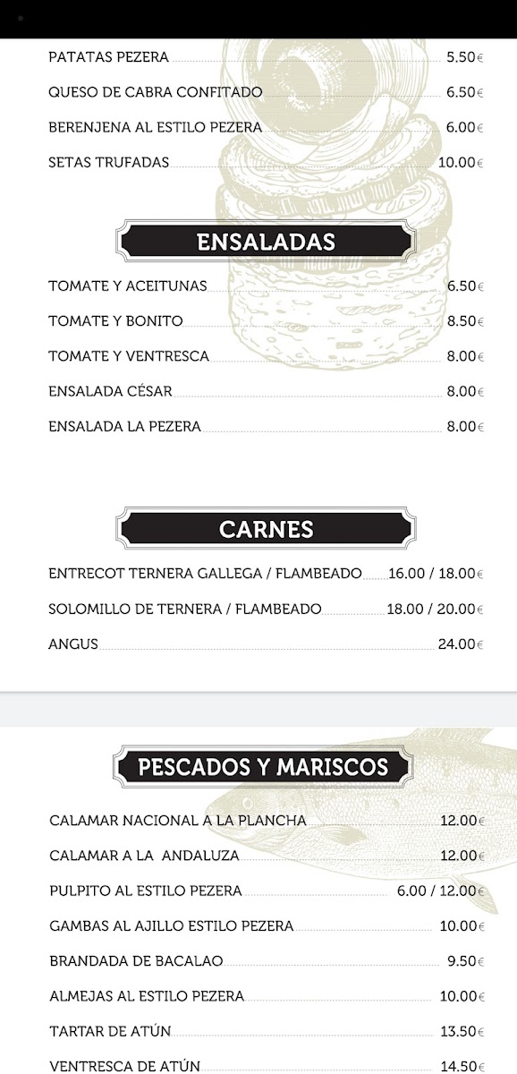 Drinks, including regional wines and refreshing draft beers like Estrella de Levante, effortlessly pair with the food while enhancing the ambient, welcoming setting. Overall, the menu at La Pezera supports a relaxed dining pace where good conversation and genuine enjoyment naturally take center stage.